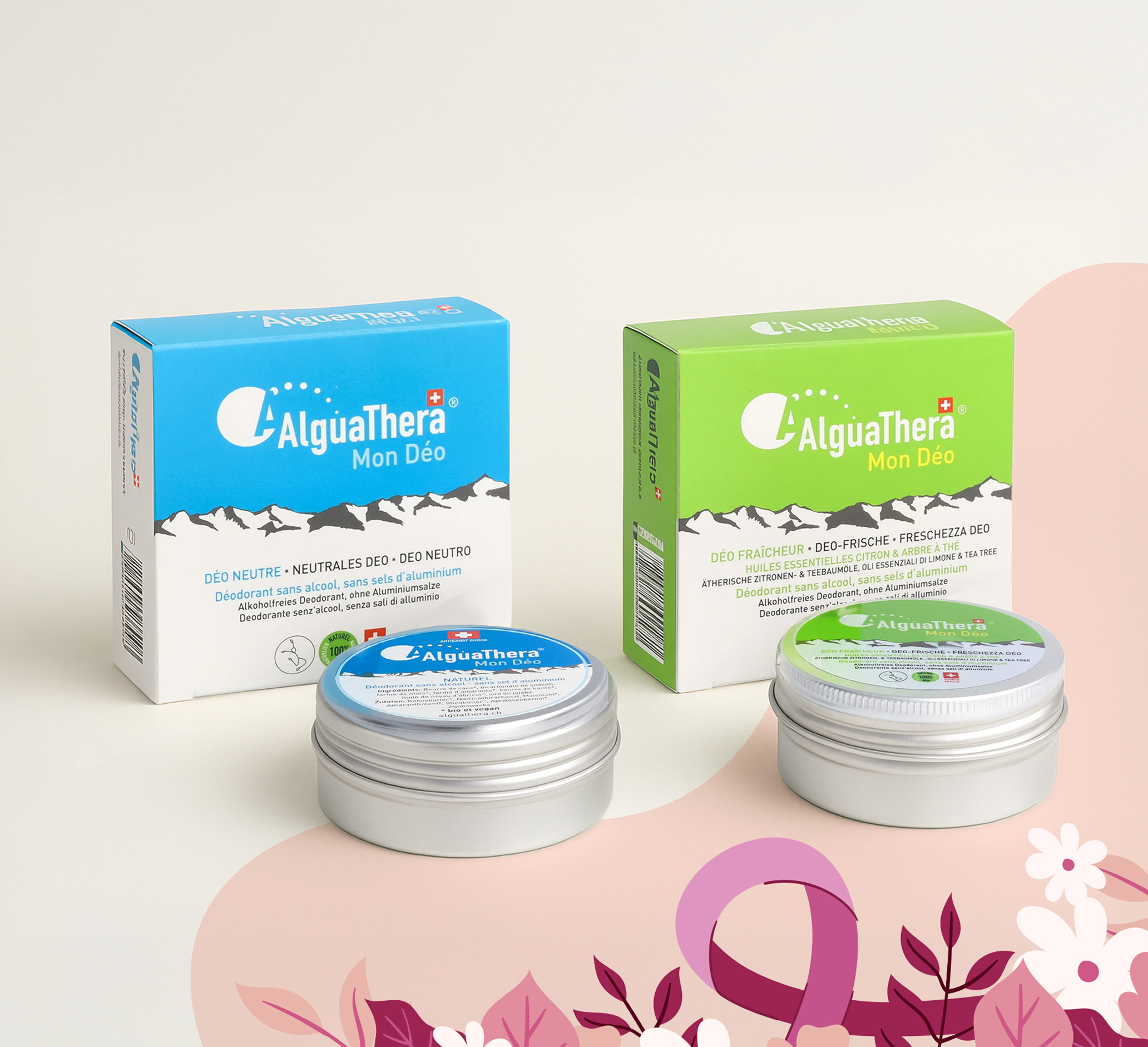 Les huiles et les graisses végétales ne dessèchent pas la peau, au contraire, elles la nourrissent ! Les produits naturels à la base des déodorants AlguaThera ne bouchent pas les pores et n’empêchent pas la transpiration. Mais ils règlent cette fonction de façon naturelle et empêchent les mauvaises odeurs en réglant la flore et la régénérant d’une manière saine.